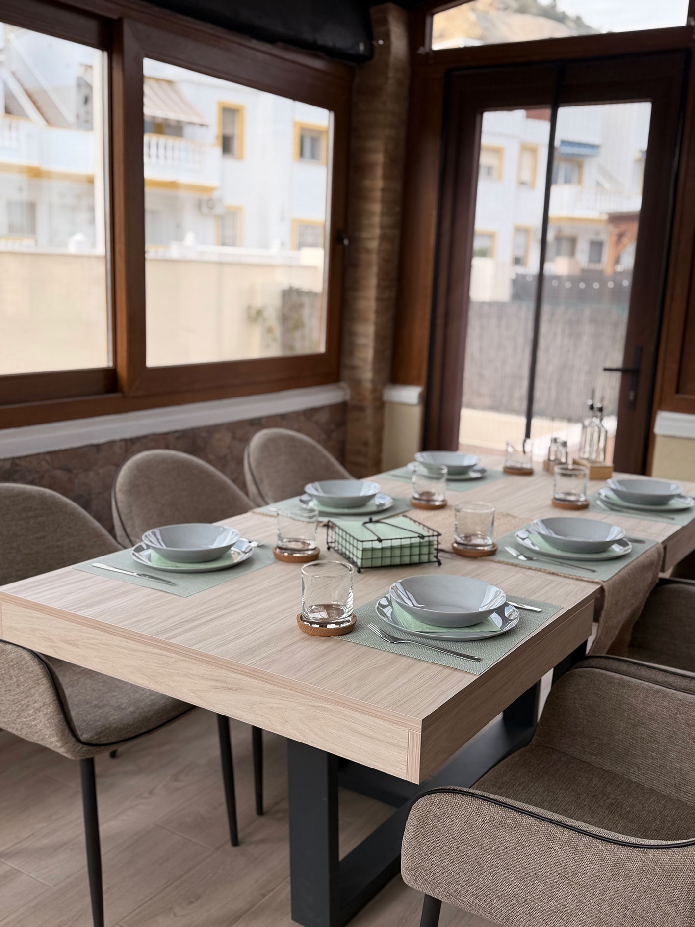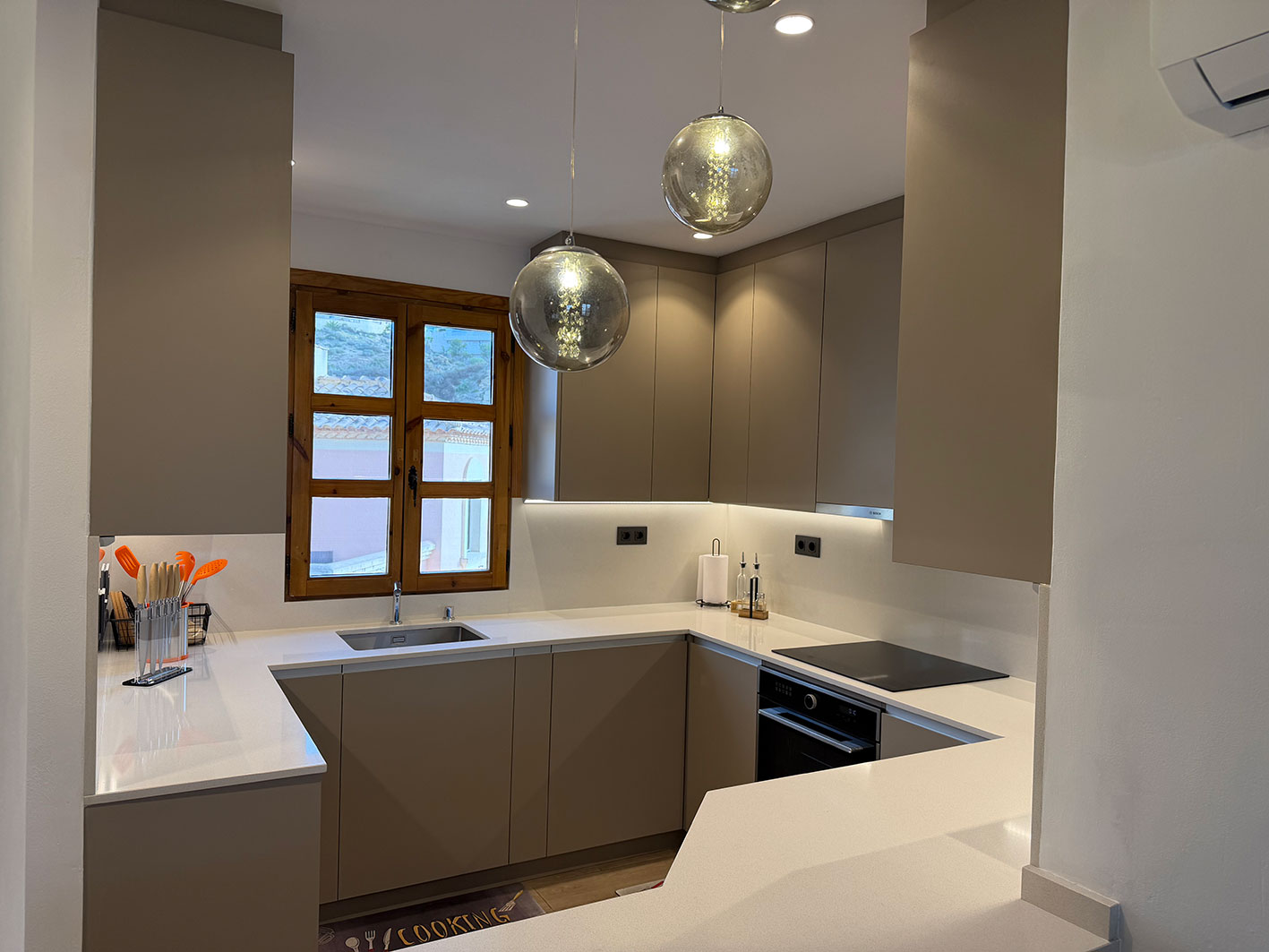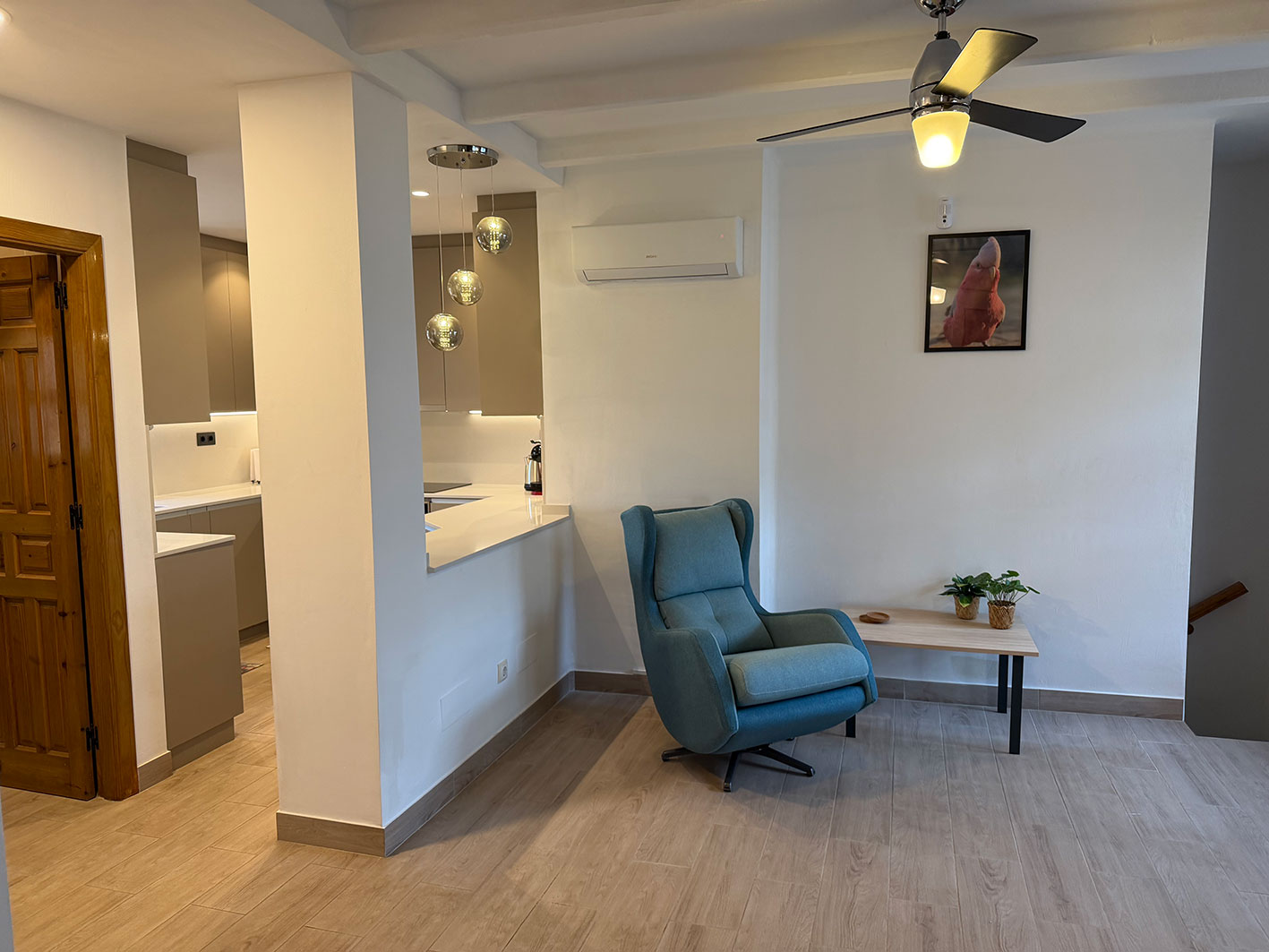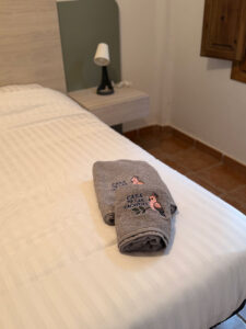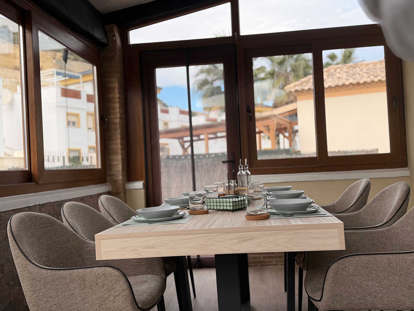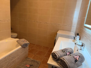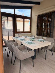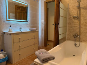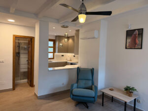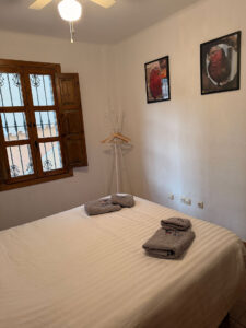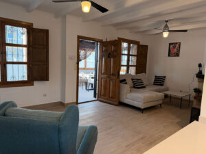 Binnen is de woning volledig uitgerust en voorzien van airconditioning in alle ruimtes. De volledig ingerichte keuken beschikt over een koelkast, diepvries, oven, kookplaat, koffiemachine en waterkoker, en is ingericht voor 6 personen. De gezellige woonruimte is voorzien van een tv met alle zenders en gratis wifi.